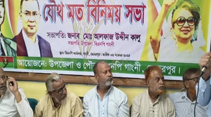 মেহেরপুর-২(গাংনী) আসনের দলীয় মনোনয়ন বাতিলের দাবিতে গাংনী উপজেলা ও পৌর বিএনপি’র যৌথসভা অনুষ্ঠিত হয়েছে, আজ বৃহস্পতিবার সকাল ১০ টার সময় মেহেরপুর জেলা বিএনপি’র সভাপতি জাভেদ মাসুদ মিল্টনের কার্যালয়ে এই যৌথসভা