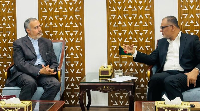 বাণিজ্য উপদেষ্টা শেখ বশিরউদ্দীন এর সাথে বাংলাদেশে নিযুক্ত ইরানের রাষ্ট্রদূত মানসুর চাভোশি সৌজন্য সাক্ষাৎ করেছেন। আজ রবিবার (১৬ মার্চ) সচিবালয়ে বাণিজ্য উপদেষ্টার অফিস কক্ষে এ সাক্ষাৎ অনুষ্ঠিত হয়। সাক্ষাৎকালে তাঁরা